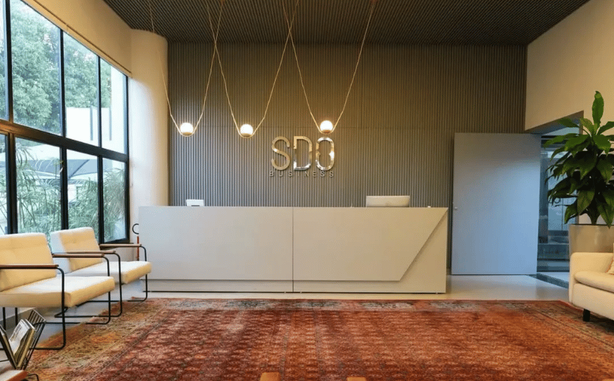 O SDO Business foi concebido como um centro corporativo multifuncional, com um design que busca unificar a elegância profissional com o bem-estar dos usuários. O projeto foi meticulosamente planejado para criar ambientes distintos, mas que se complementam, atendendo às necessidades de diversas empresas com uma identidade visual forte e coesa.